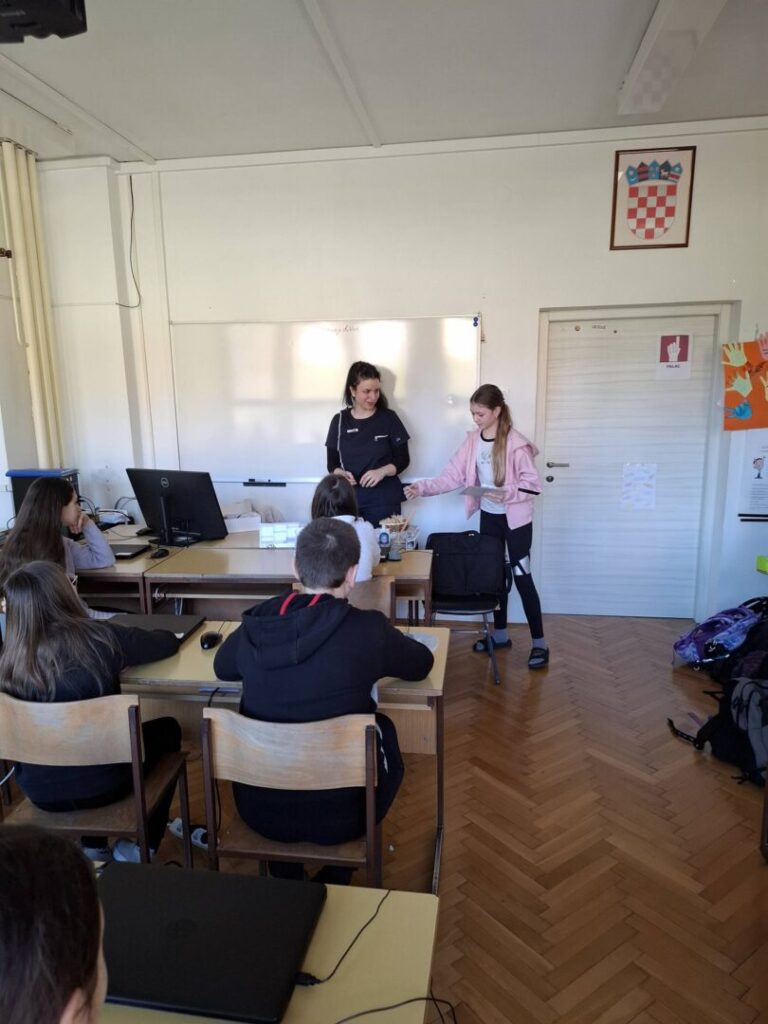 Današnji susret nije bio samo “provjera znanja”. Učenici su pokazali i svoju kreativnu stranu izradom edukativnog plakata koji će služiti kao podsjetnik na važnost redovitog četkanja svim ostalim učenicima u školi. Vrhunac susreta bila je podjela zahvalnica za sudjelovanje, čime je službeno obilježen uspješan završetak projekta. Uz priznanja, učenike su posebno razveselili i prigodni pokloni koji će im pomoći u daljnjem održavanju zdravih navika.